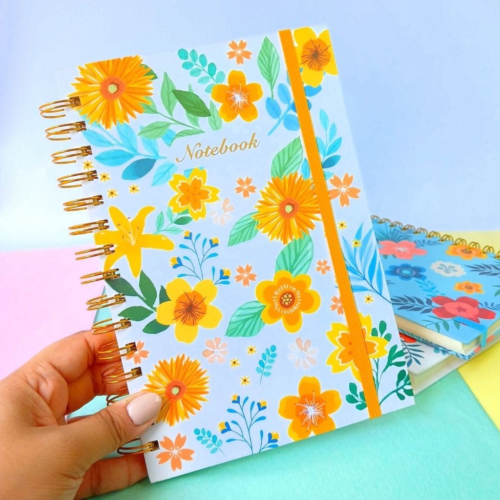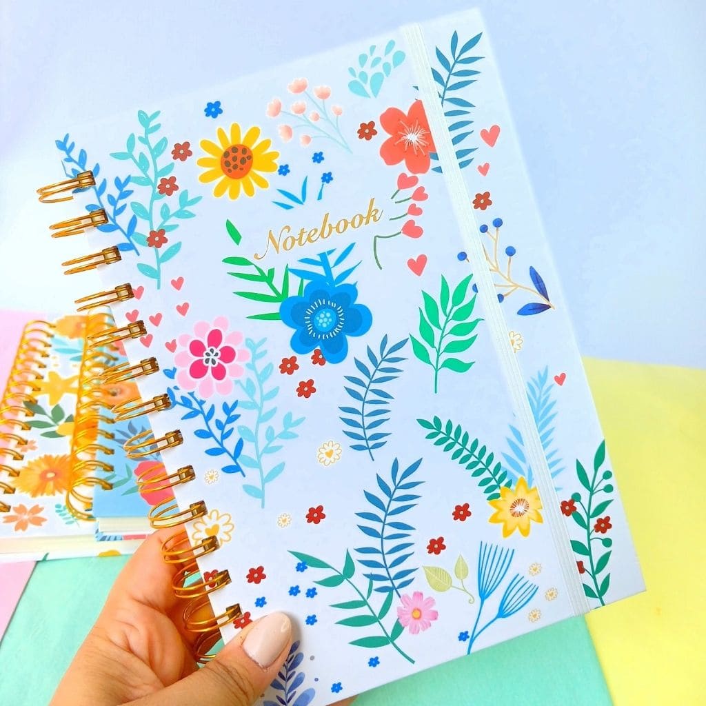 Cuaderno Floreado Tapa dura con elástico 80h